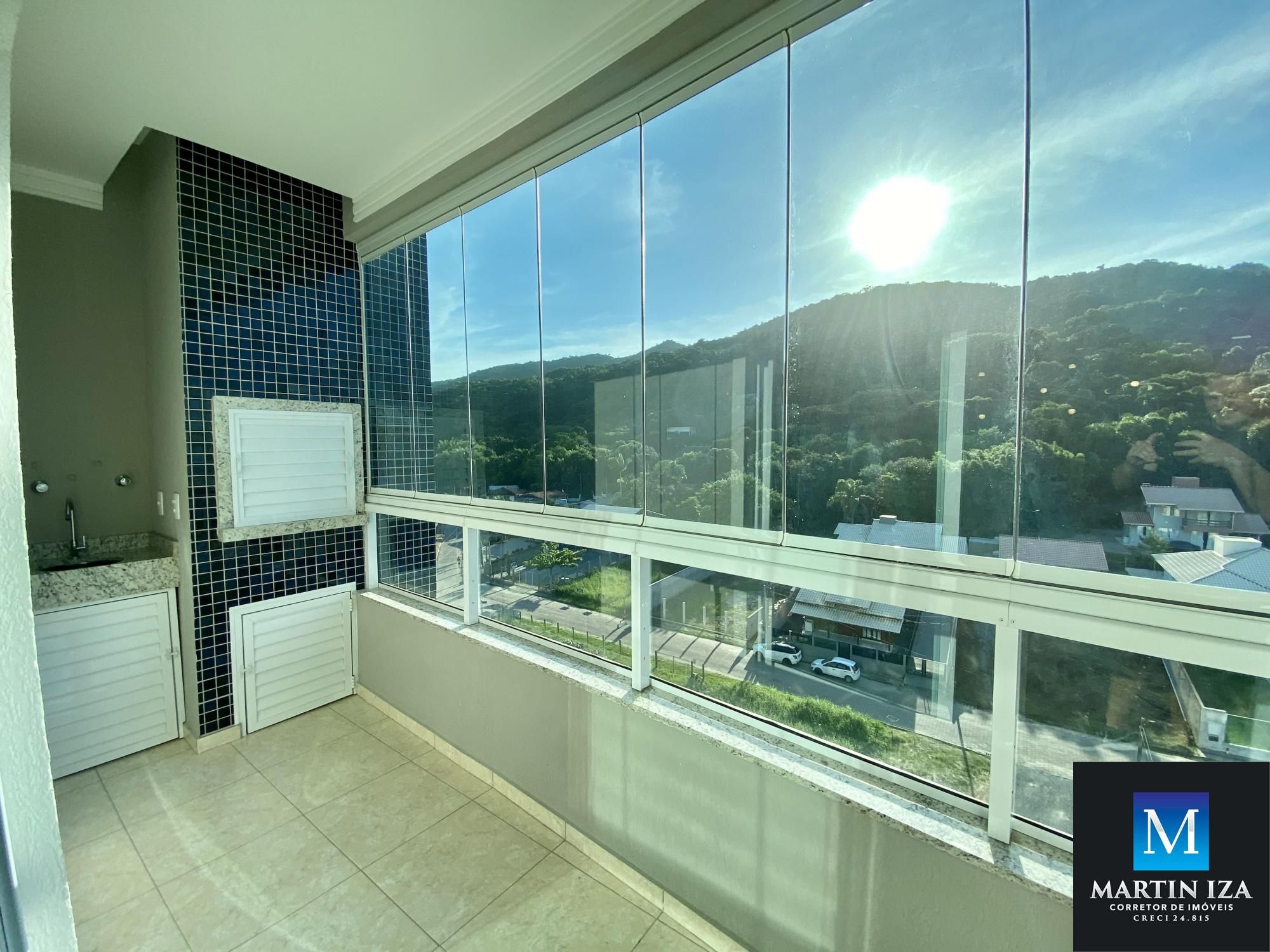 -sacada fechada com vista para o morro e o mar