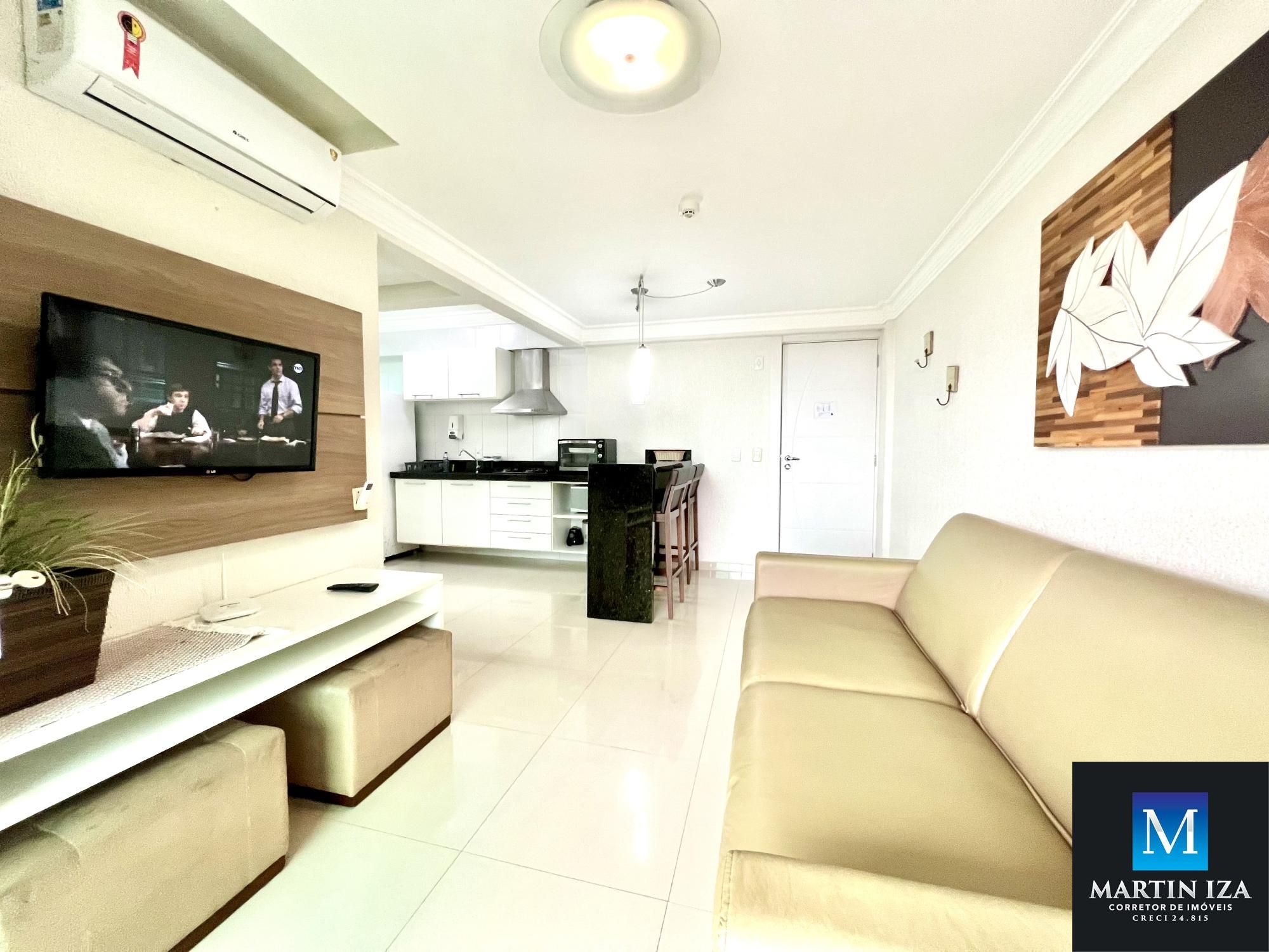 -Sala de Estar: Ampla e bem iluminada, a sala de estar é equipada com móveis confortáveis, como um sofá-Cama, Tv smart e Ar-condicionado, proporcionando um ambiente relaxante para descansar após um dia na praia.