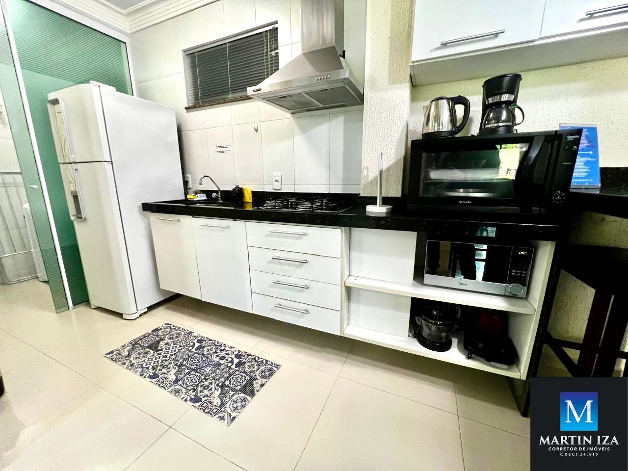 -Cozinha: A cozinha é compacta, mas funcional, com todos os utensílios necessários para preparar refeições simples. Inclui fogão, geladeira, micro-ondas e armários para armazenar alimentos e utensílios.