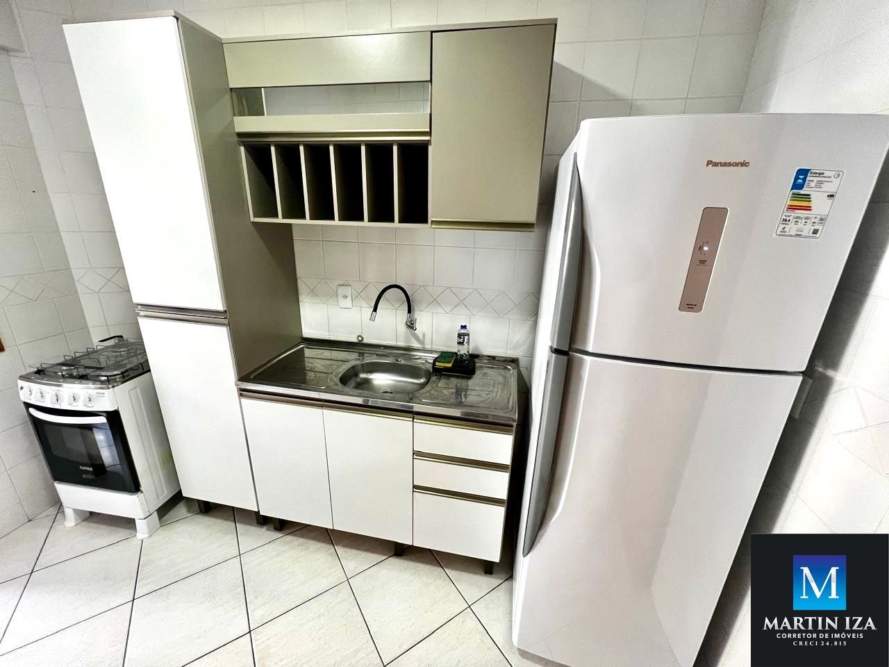 -Cozinha completa equipada com fogão, geladeira, microondas e utensílios básicos.