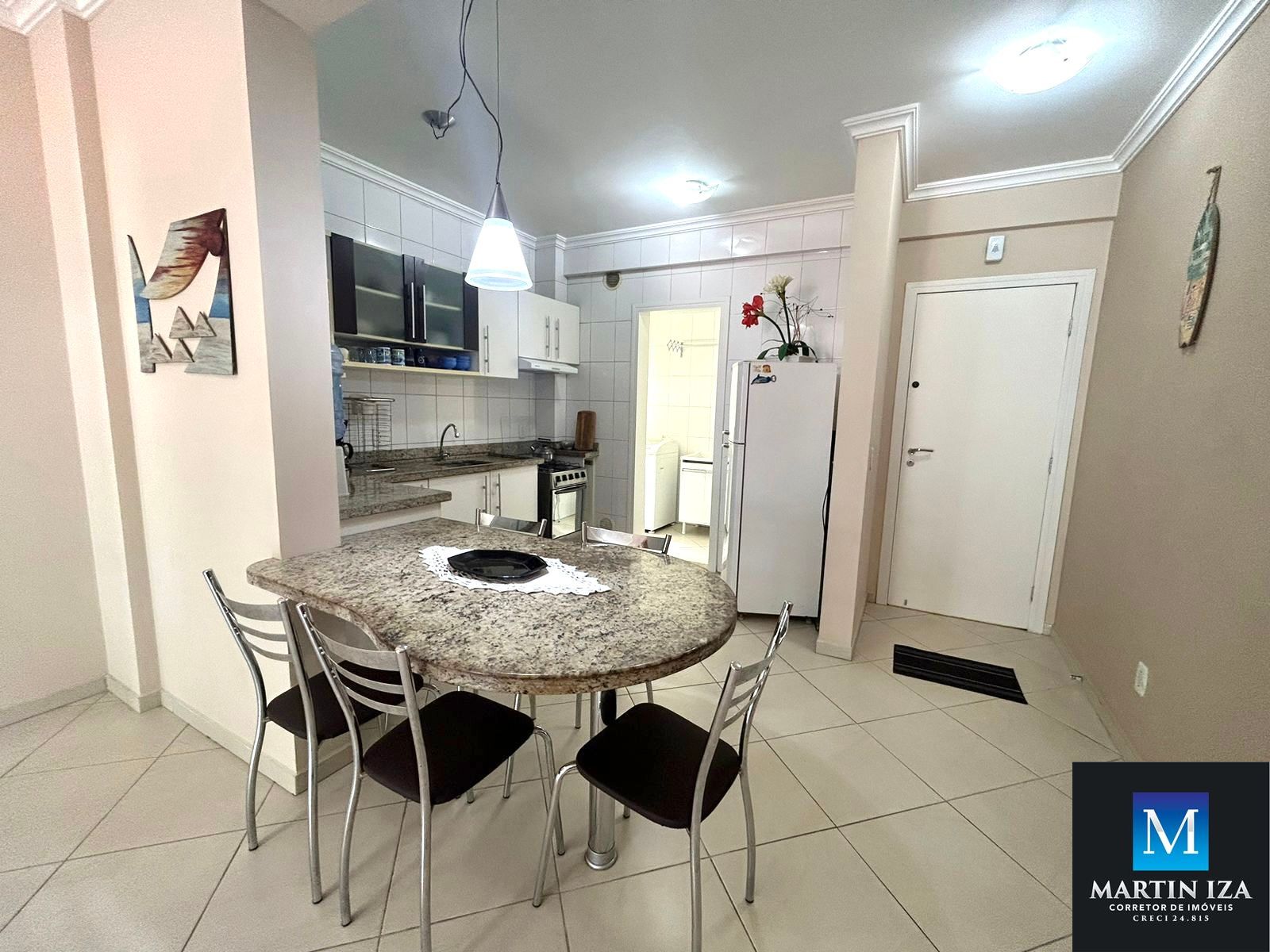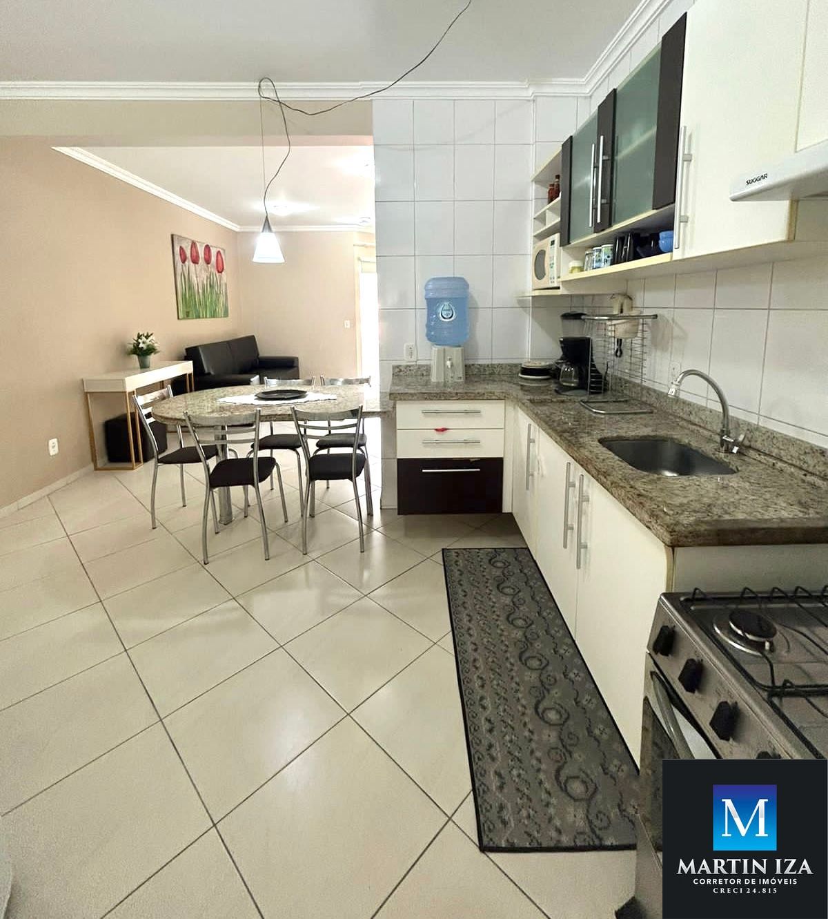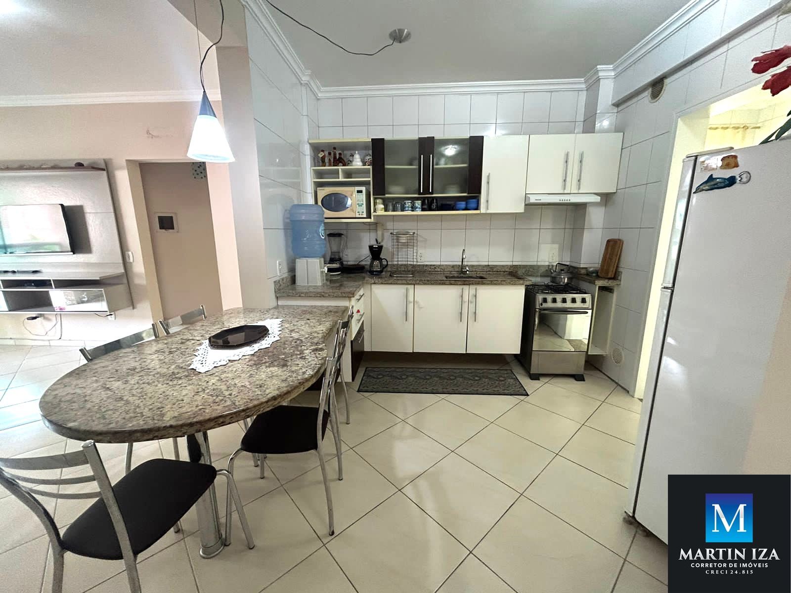 -Cozinha completa equipada com fogão, geladeira, micro ondas.