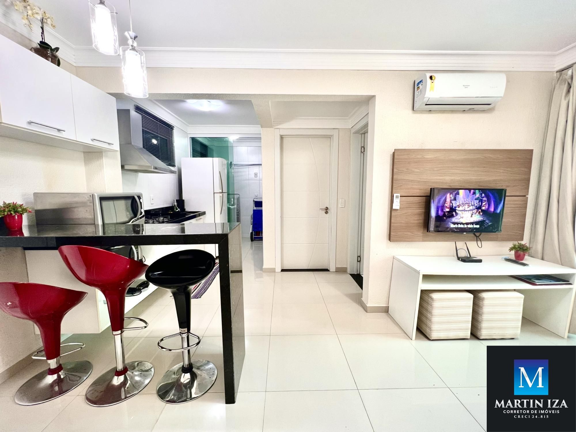 -Sala de Estar: Ampla e bem iluminada, a sala de estar é equipada com móveis confortáveis, como um sofá-Cama, Tv smart e Ar-condicionado, proporcionando um ambiente relaxante para descansar após um dia na praia.