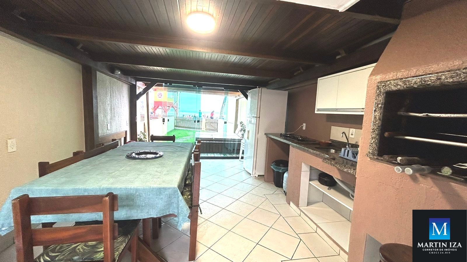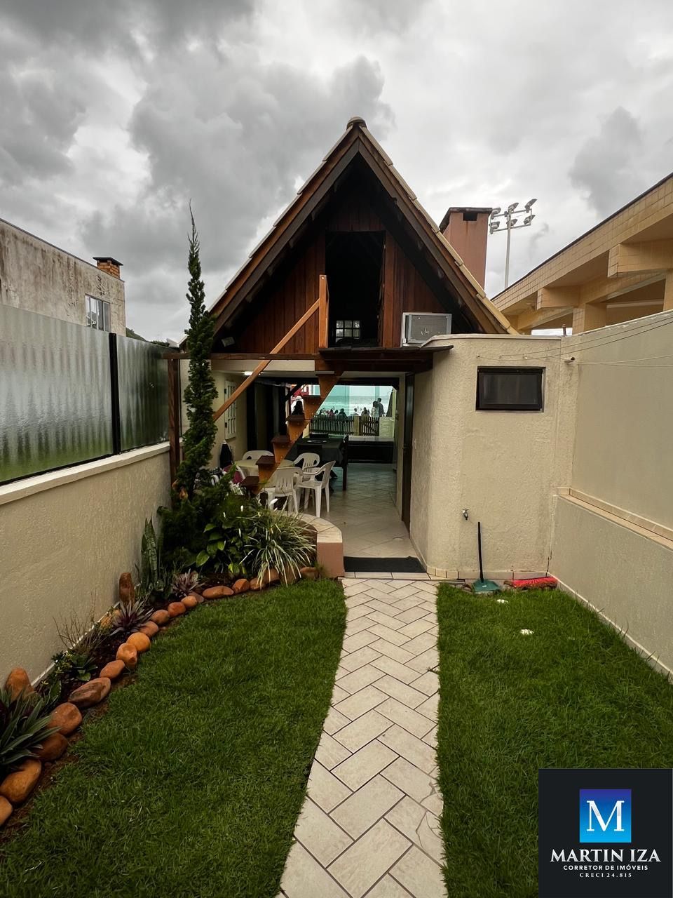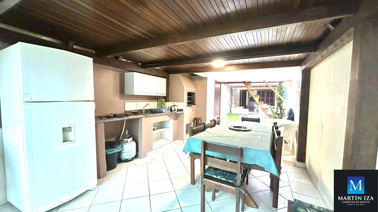 Área de frente para o mar com churrasqueira, cozinha completa e 01 banheiro social. No andar superior um dormitório com cama de casal e ar condicionado por escada