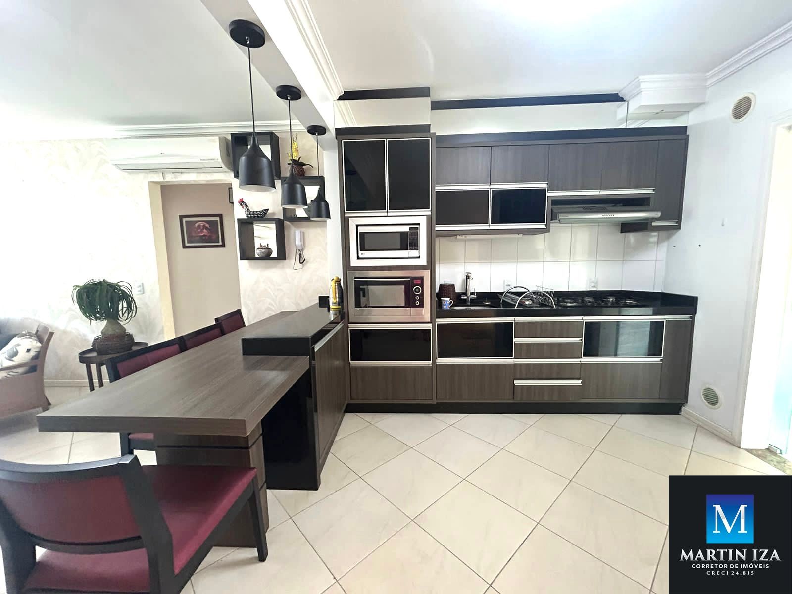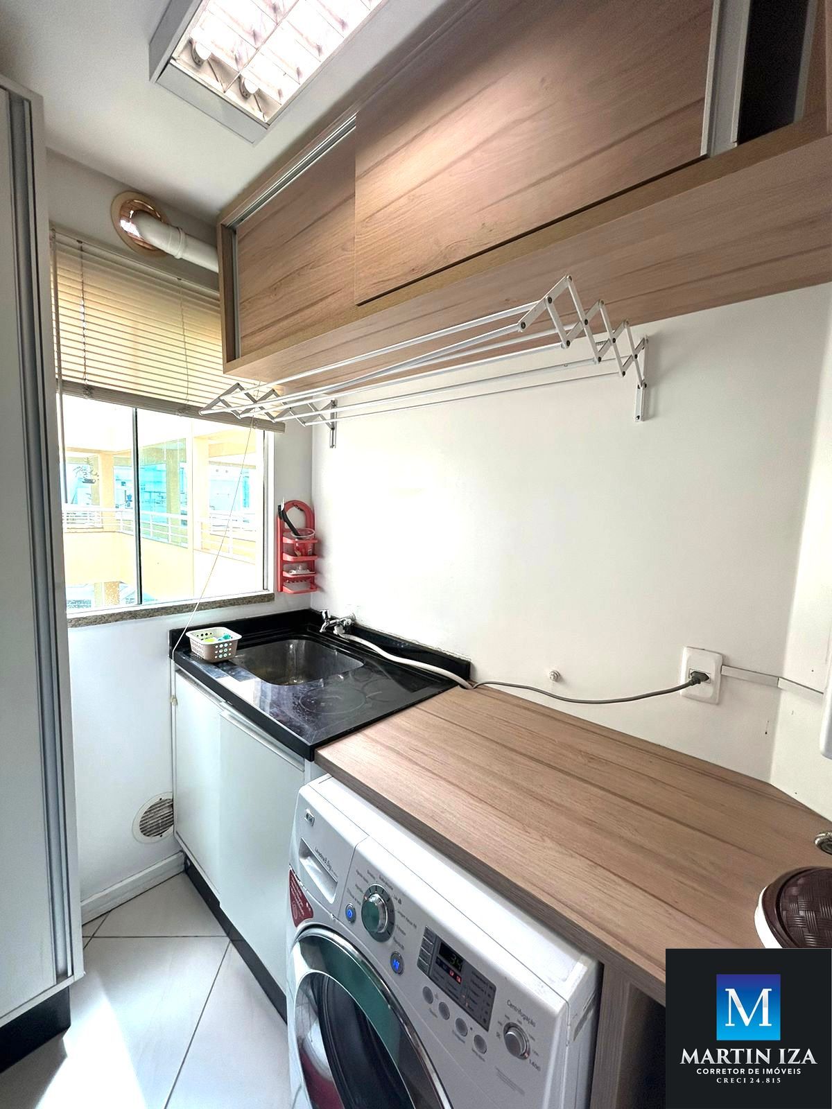 Cozinha completa com área de serviço é máquina lavar roupa