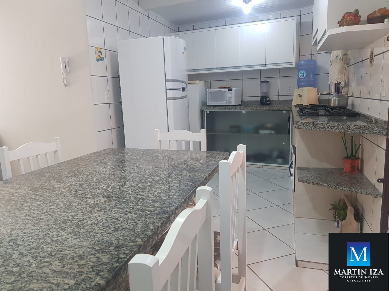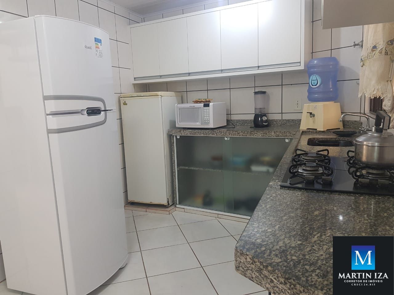 -Cozinha completa equipada com fogão, geladeira, micro ondas e utensílios básicos.
